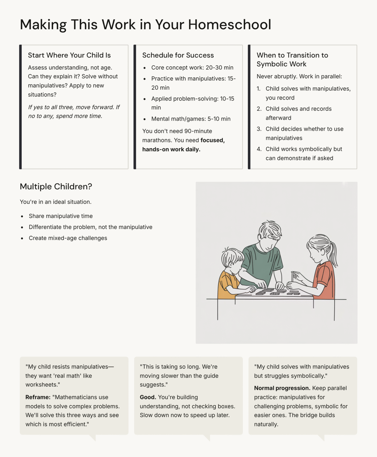 Your manipulative work provides the foundation. Daily life provides the application. Together, they create mathematical fluency.