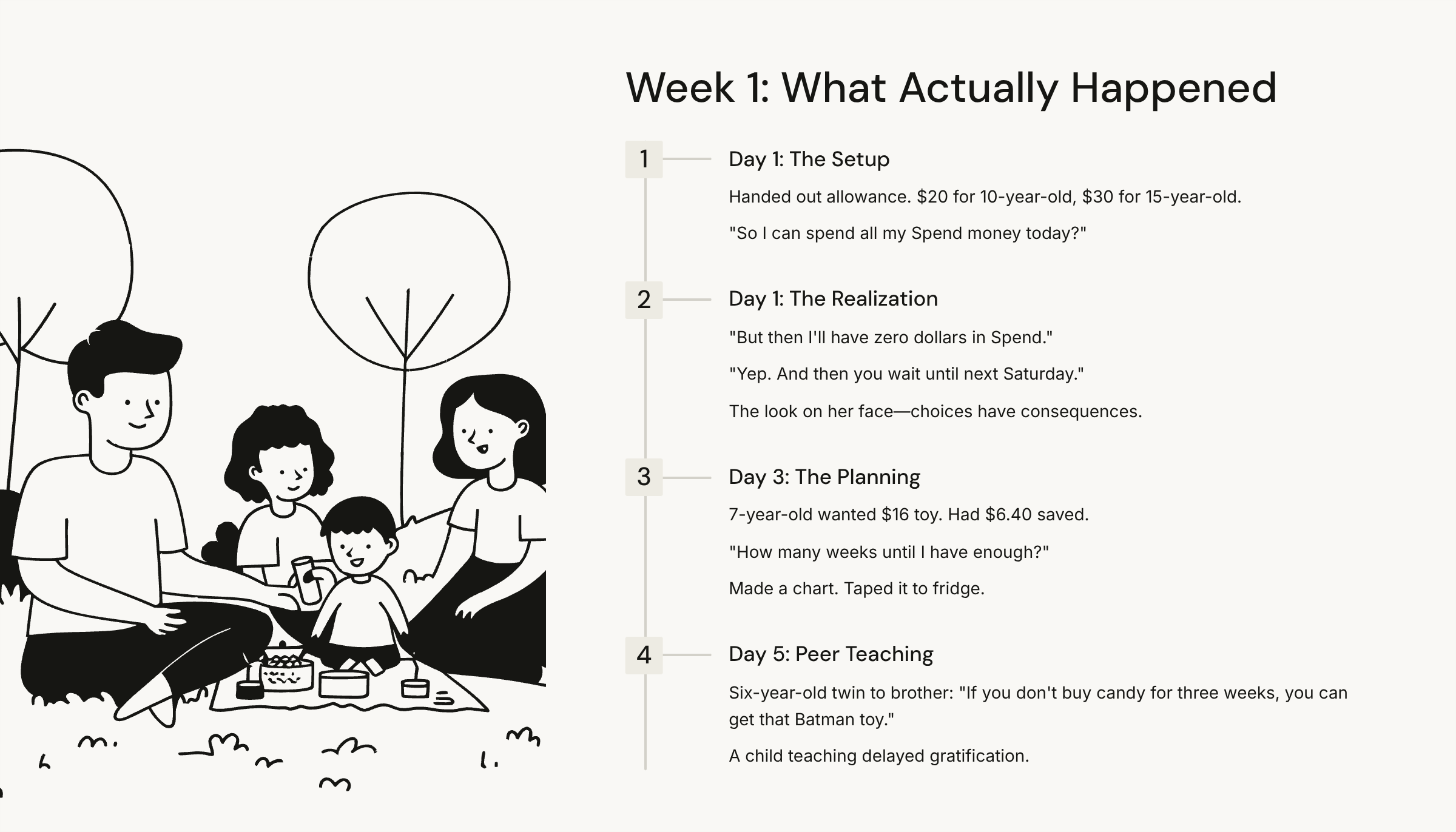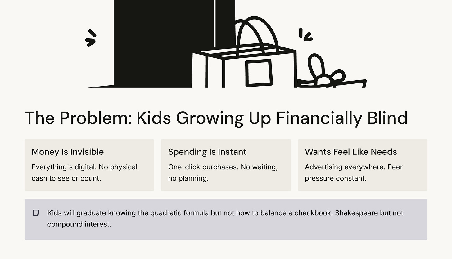 At dinner tonight, tell your kids: “We’re trying something new with money. I’m going to teach you what schools don’t: how to actually handle money in real life.”