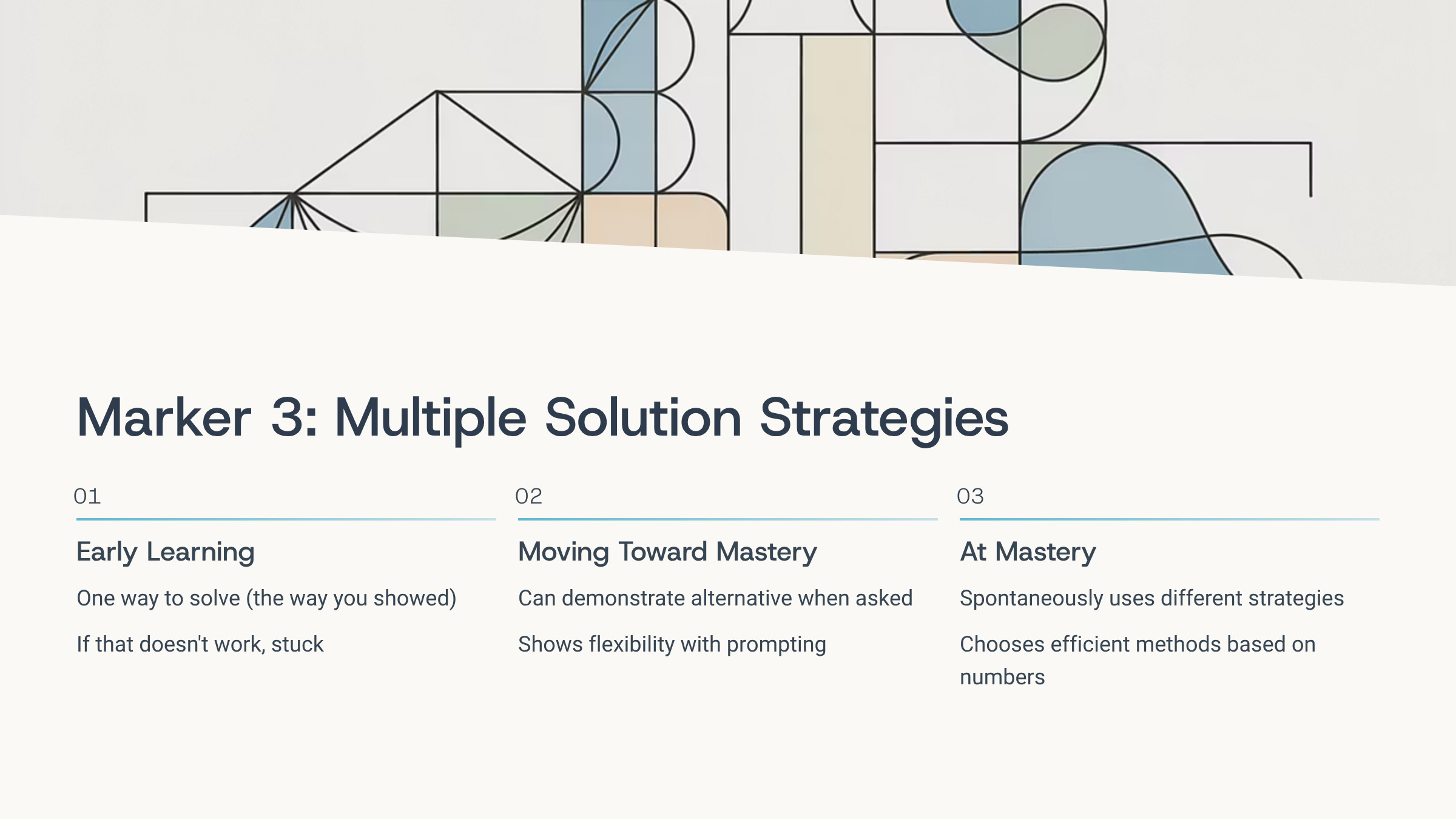 Test: Ask “Why does that work?” or “Show me a different way.” Can they explain or demonstrate?